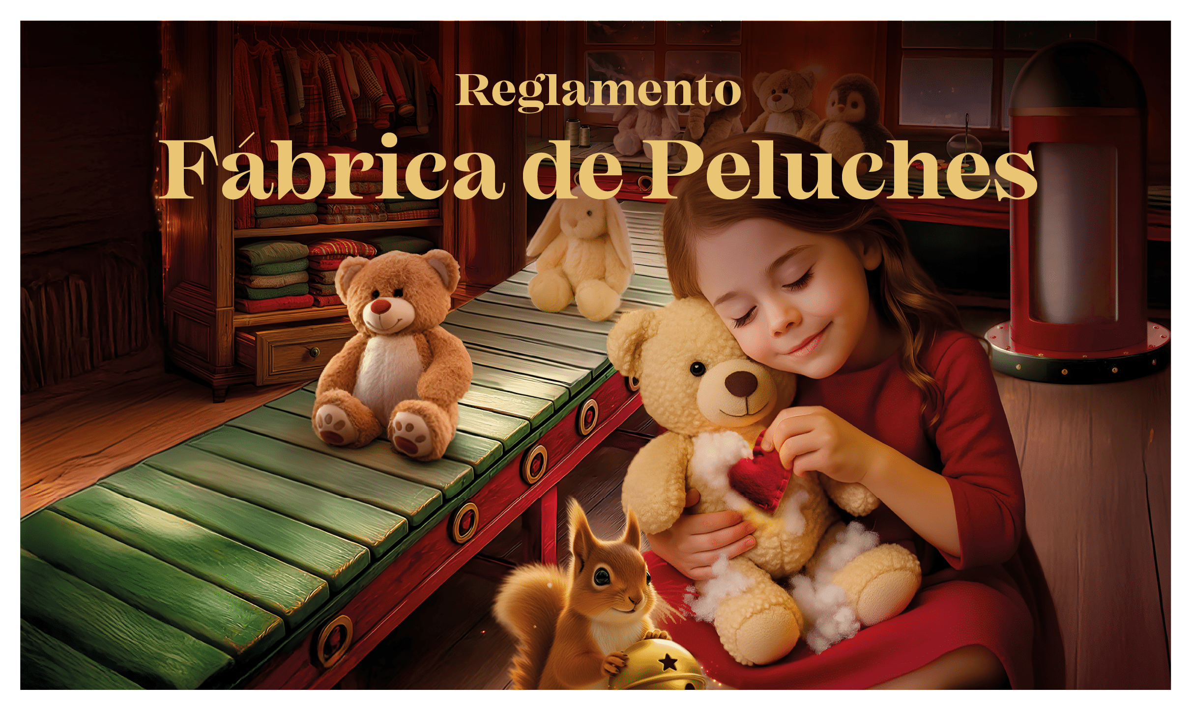 Un mueble que simula una máquina industrial y una máquina de algodón que rellena los peluches.